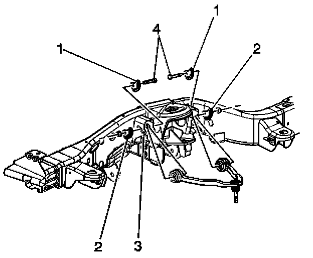 8. Remove the upper control arm bolts (4) for the 15 Series 2WD, 4WD, and 25/35 Series 2WD.