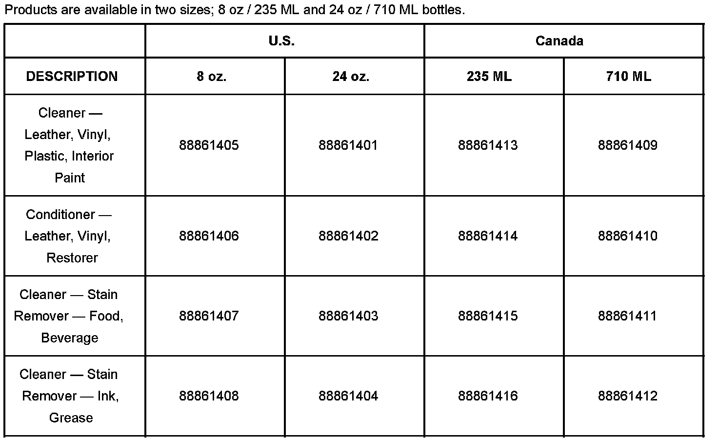 Because it is critical to use only mild, neutral-pH cleaners, General Motors has approved the use of the cleaners and conditioners listed in this bulletin for the cleaning of interiors. These products are in the neutral-pH range and will maintain the best vehicle interior appearance. These products are water-based, biodegradable, and do not contain bleach, solvents or harsh chemicals.
