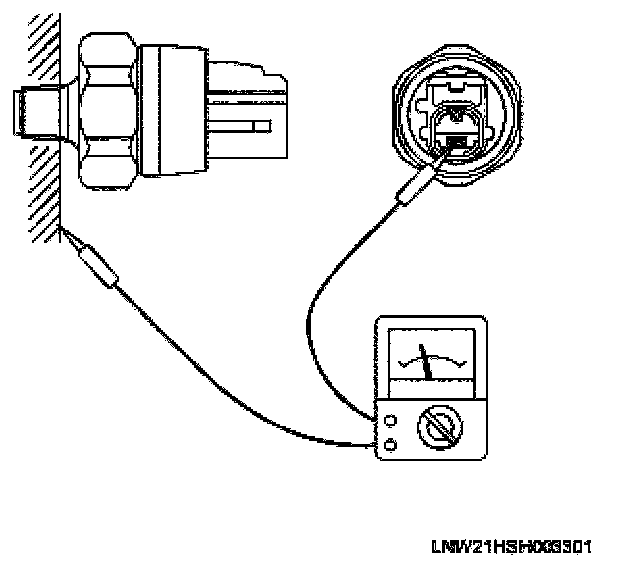 The oil pressure switch is installed to the oil filter assembly. Check the continuity between the switch terminal and the body grounding in the no-load condition. If there is no connectivity, replace it.