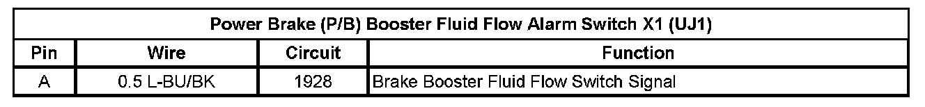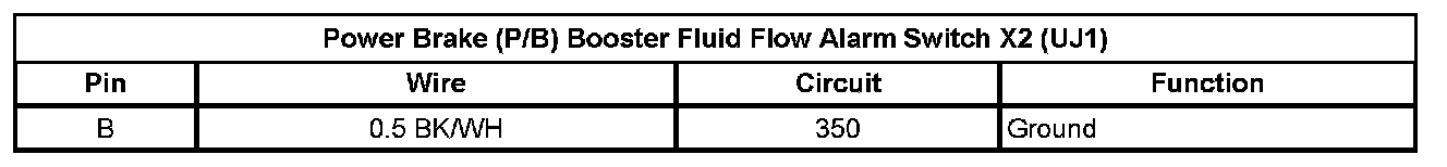 Power Brake (P/B) Booster Fluid Flow Alarm Switch X1 (UJ1)