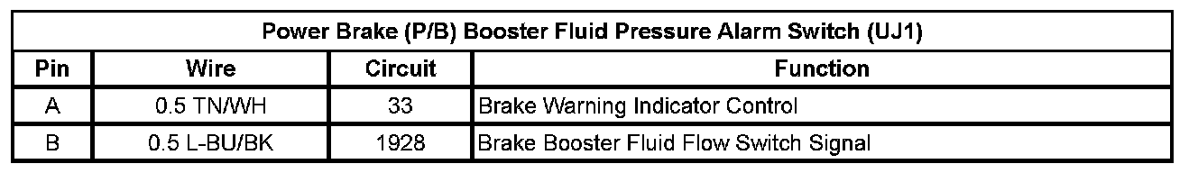Power Brake (P/B) Booster Fluid Pressure Alarm Switch (UJ1)