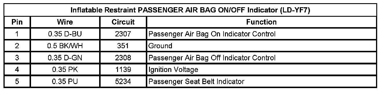 Inflatable Restraint PASSENGER AIR BAG ON/OFF Indicator (LD-YF7)
