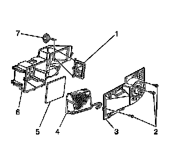 3. Remove the recirculation door (1) from the evaporator and blower module assembly.