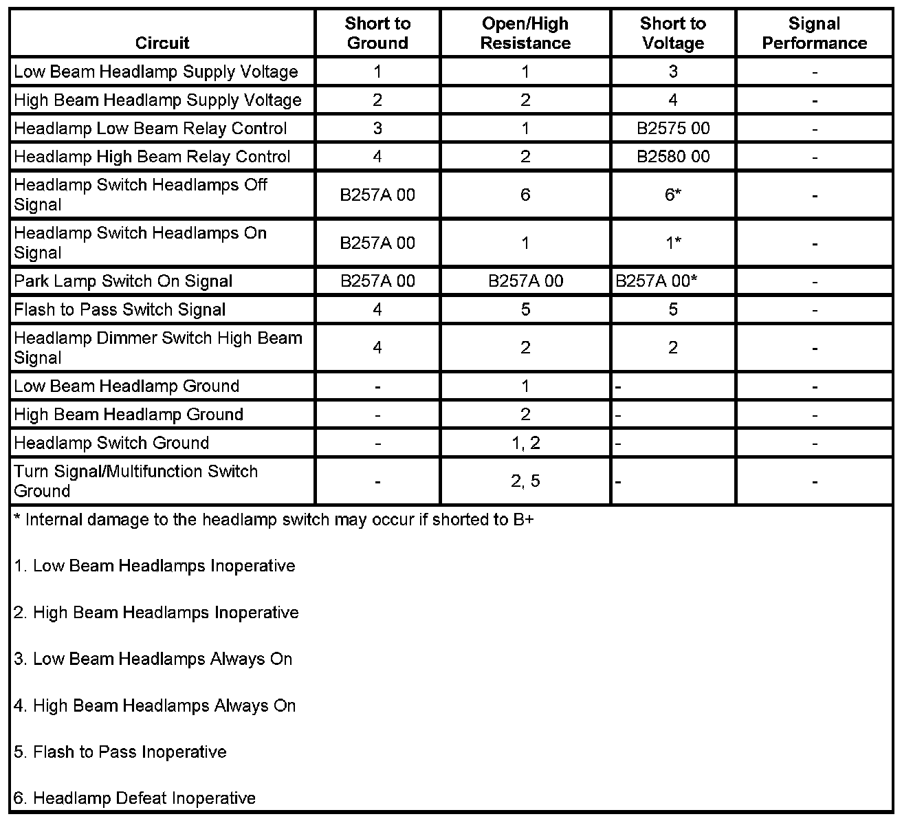 7. If all circuits test normal, test or replace the headlamp switch.