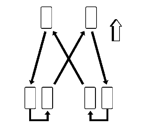 8. For vehicles with dual rear wheels, including the spare tire, rotate the tires as shown.