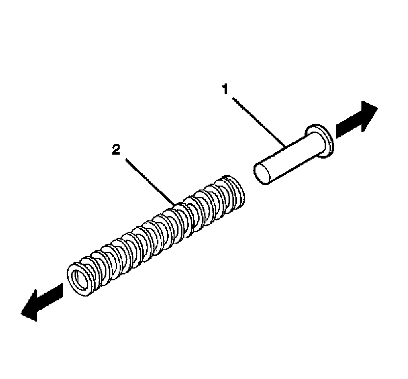 3. Install the tilt spring (1) onto the steering column support assembly (2) and onto the steering column tilt head assembly by using the following procedure: