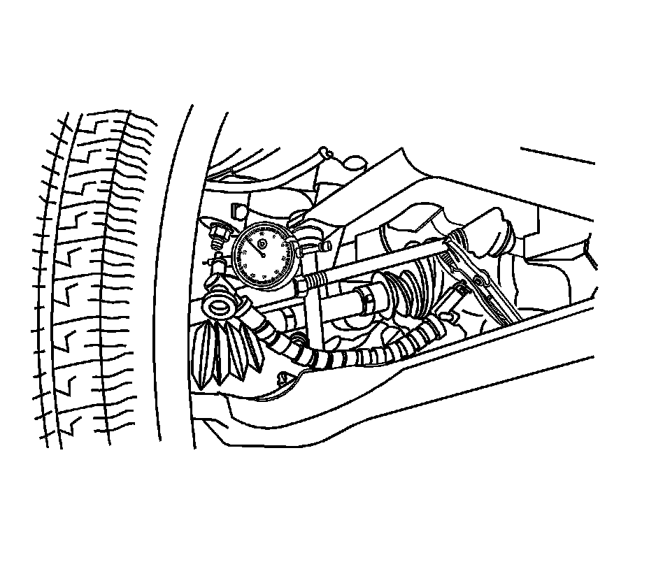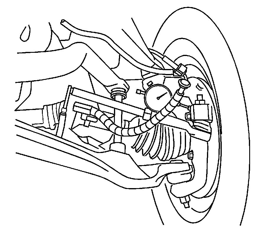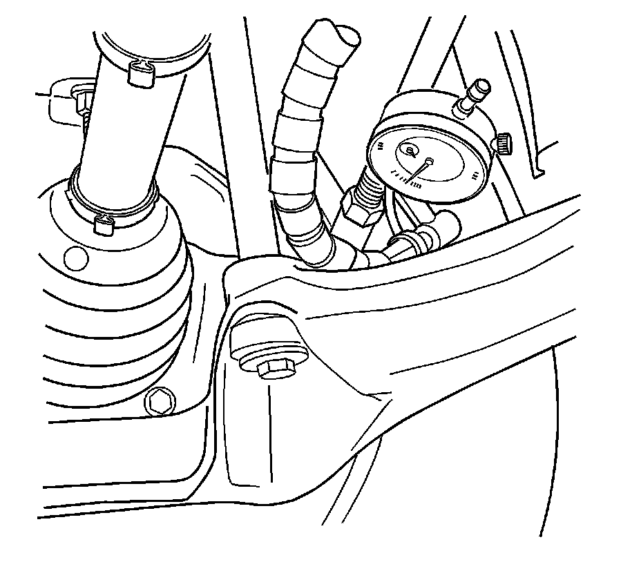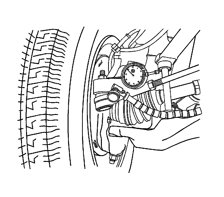 4. Place the dial indicator at zero, pull outward on the tire, and note the amount of movement in the joint.
