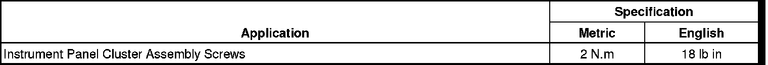 Instrument Panel, Gauges and Warning Indicators: Specifications