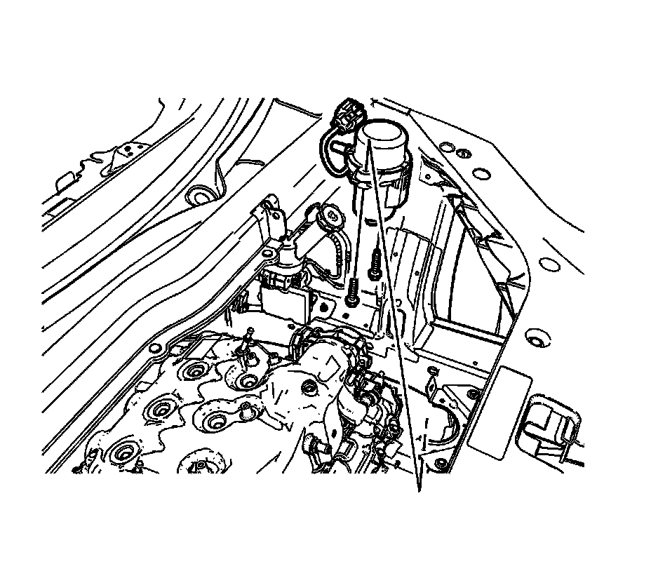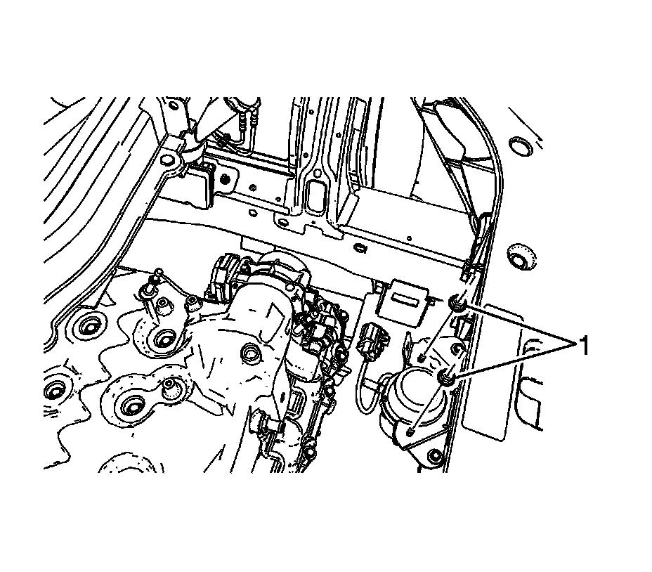 1. If removed, install the power brake booster auxiliary pump bracket bolts (1) and bracket (2) and tighten the bolts to 10 Nm (89 lb in).