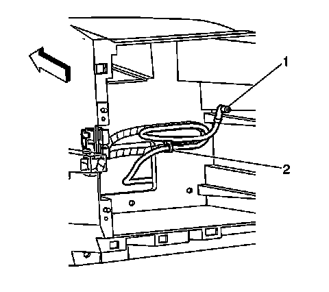 4. Remove the antenna cable (1) from the retaining clips on the instrument panel carrier.