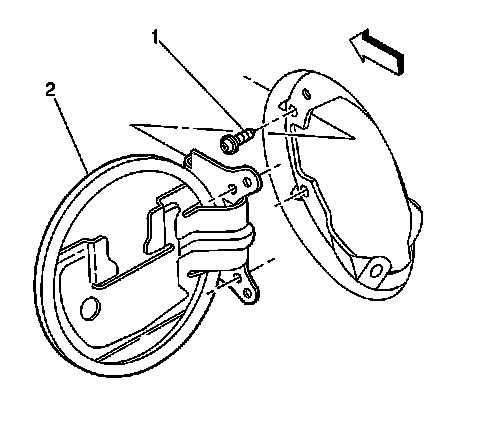 1. Remove the screws (1) that retain the fuel filler door to the body.