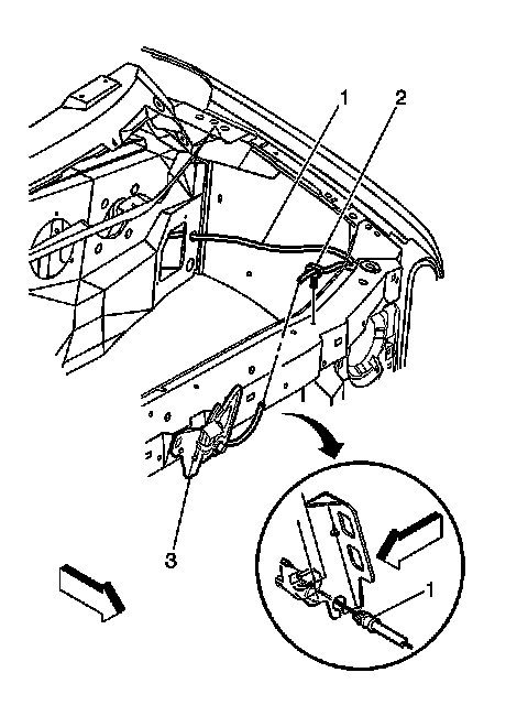 5. Remove the left side hinge pillar trim panel from the body. Refer to Body Hinge Pillar Trim Panel Replacement (Body Hinge Pillar Trim Panel Replacement).