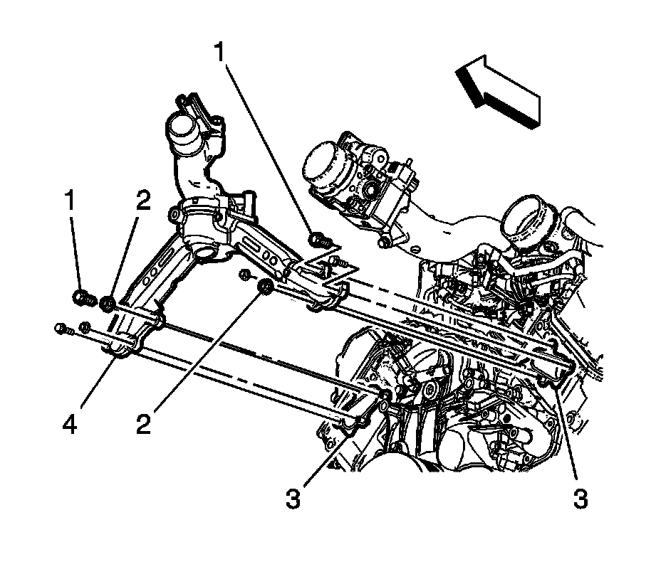 14. Remove the thermostat housing crossover pipe (4) and gaskets (3).