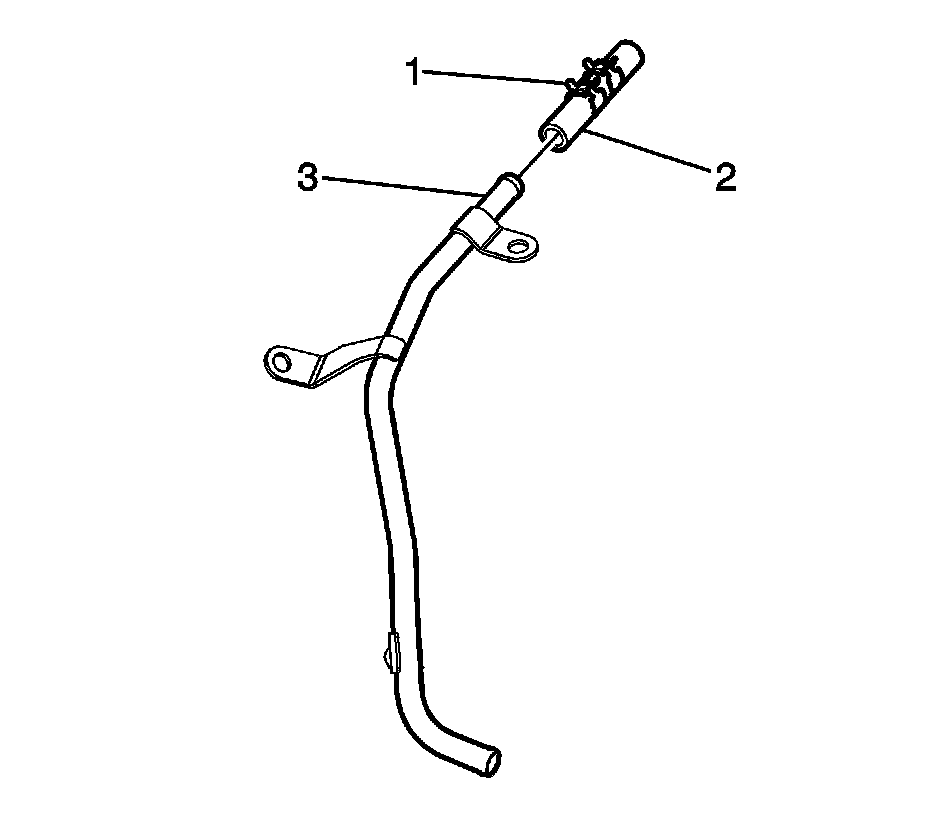 9. Remove the turbocharger coolant return pipe (3)and hose (2) from the engine.