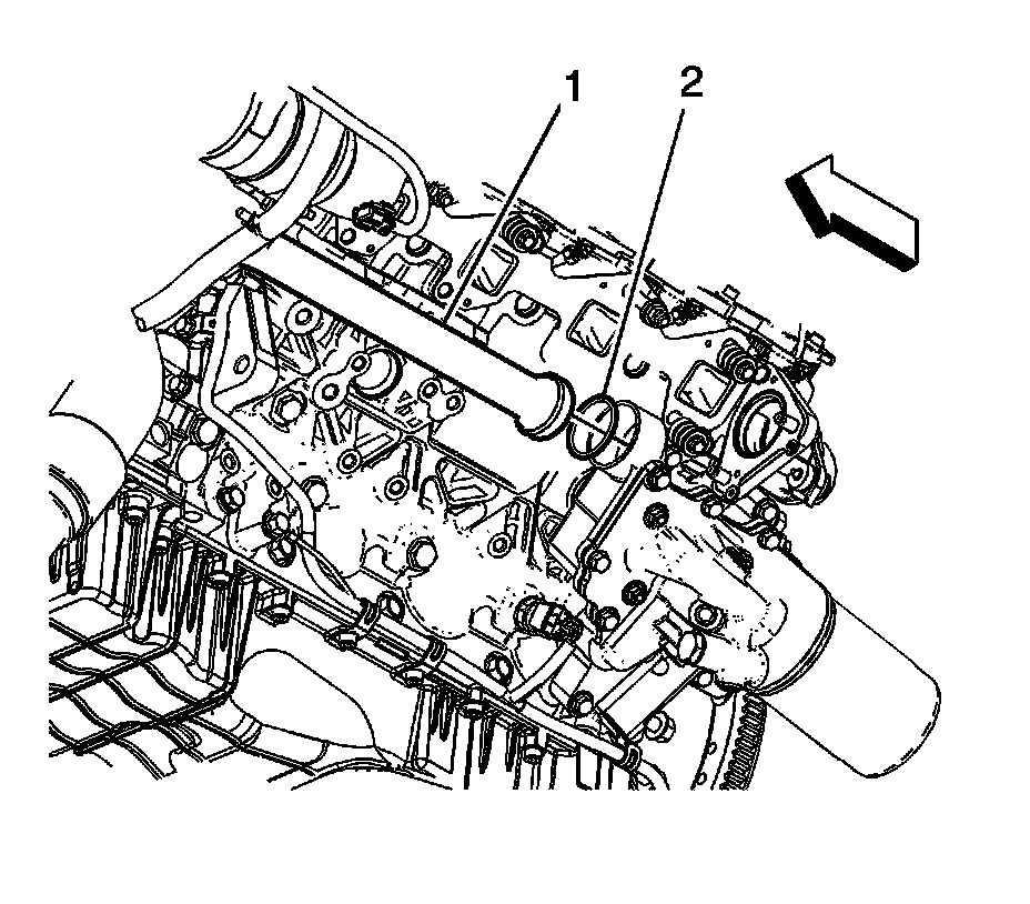 7. Remove and discard the water pump outlet pipe O-ring (2).