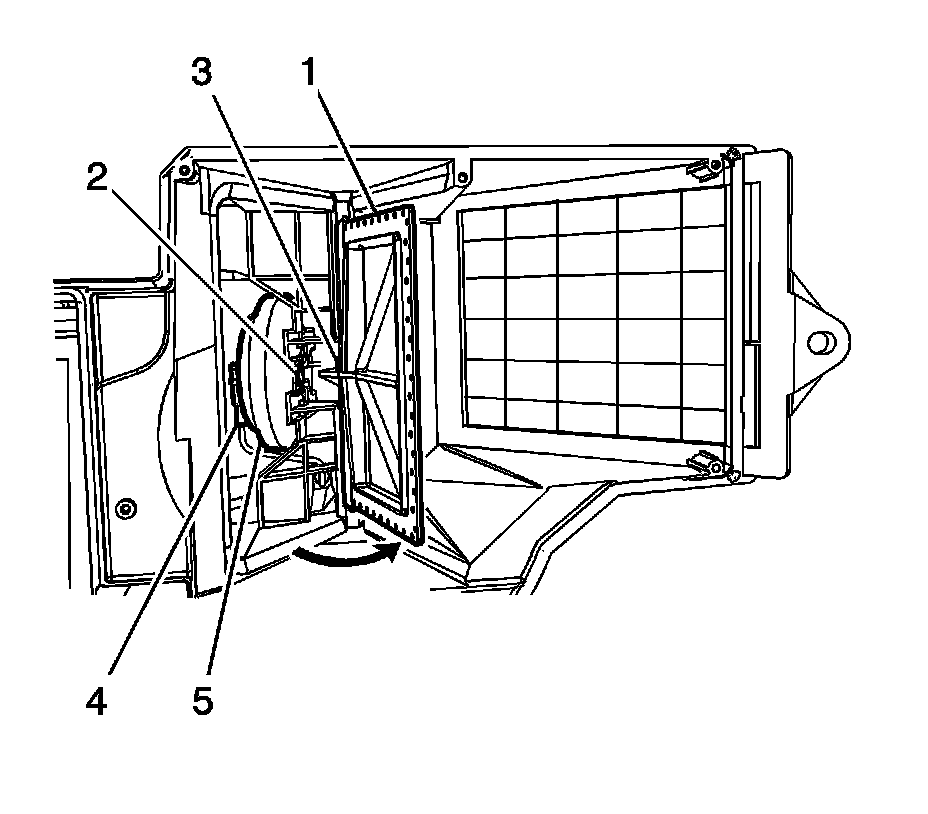 Note: Ensure the recirculation door (1) operates without binding and seals properly.