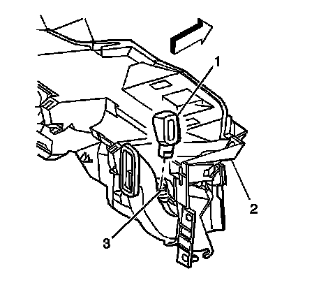 2. Remove the right window defogger duct (1) from the air distribution duct (3).