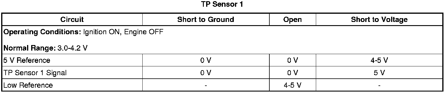 - Throttle Position (TP) Sensor 1 Circuit Low Voltage