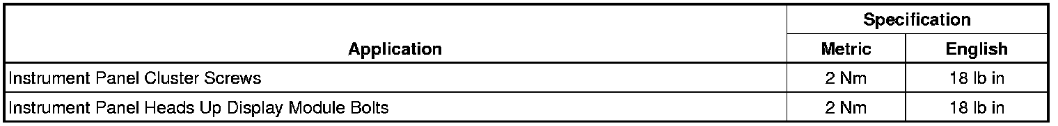 Instrument Panel, Gauges and Warning Indicators: Specifications