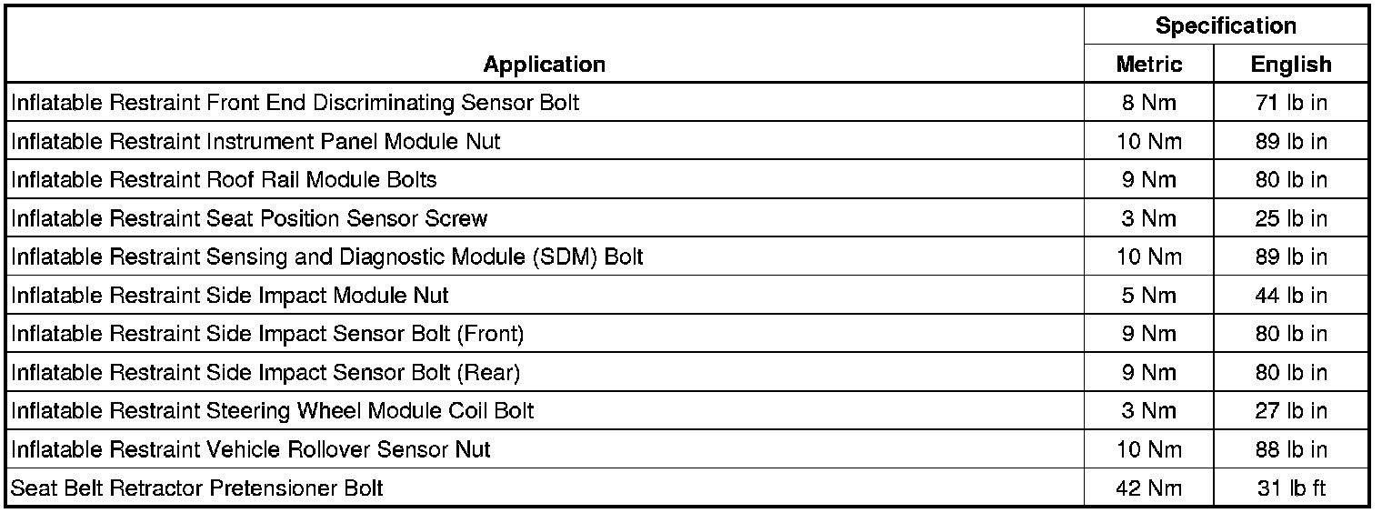 Fastener Tightening Specifications