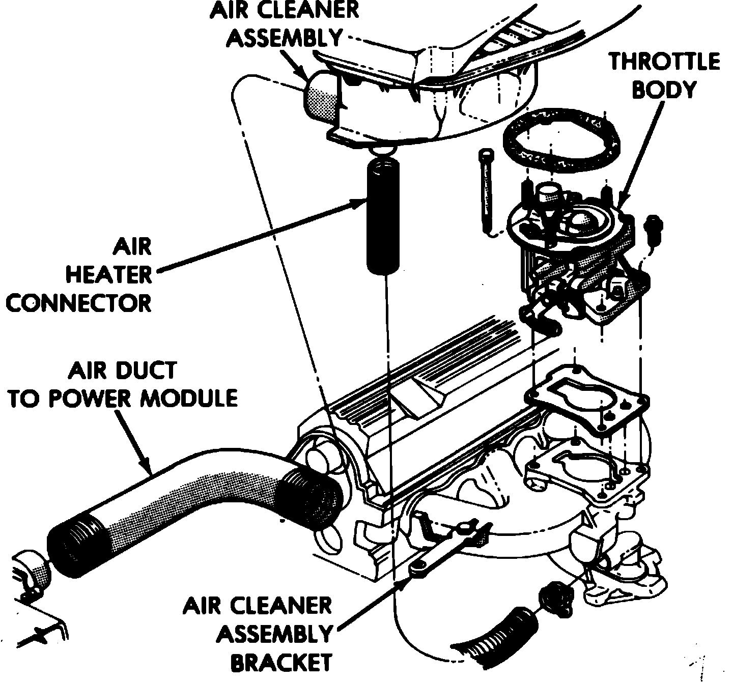 During wide-open throttle operation or at any time engine vacuum is below 4-6 inches Hg, the hot air duct is closed off allowing only cold air to enter the carburetor/EFI.