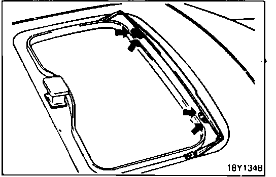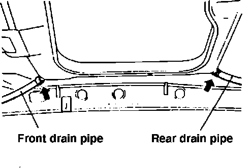 (2) If there are no leaks after the water test, remove the regulator, retainer and latch catch and install the headlining.