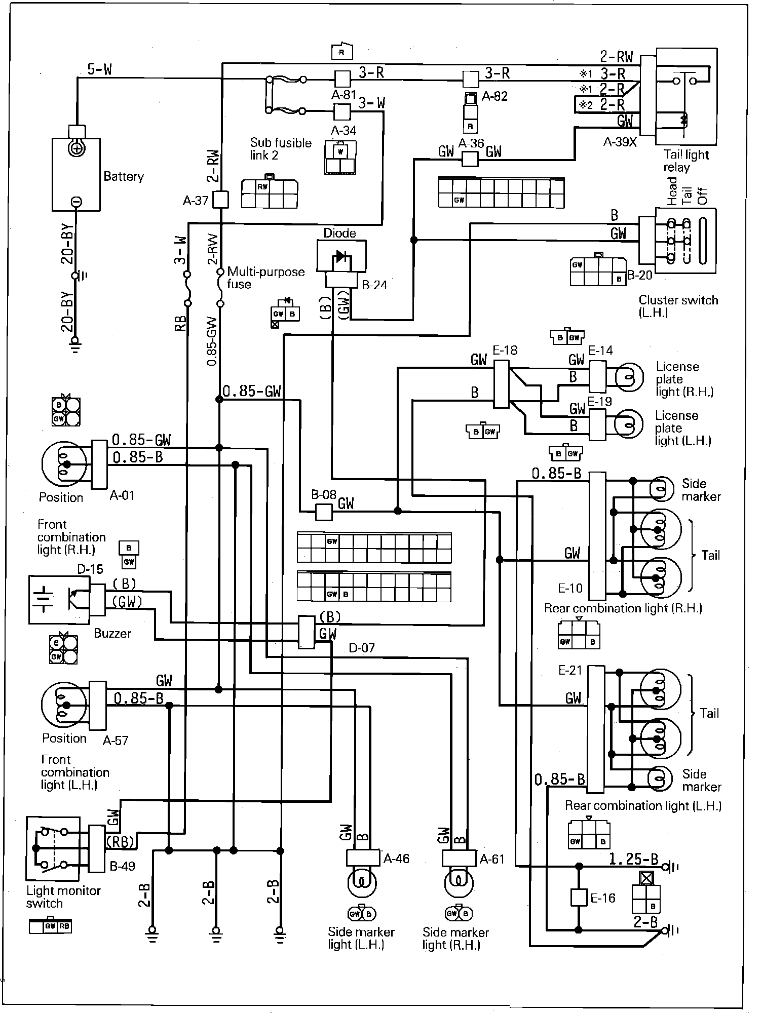 License, Position, Side Marker & Tail Lamp Wiring Circuit: