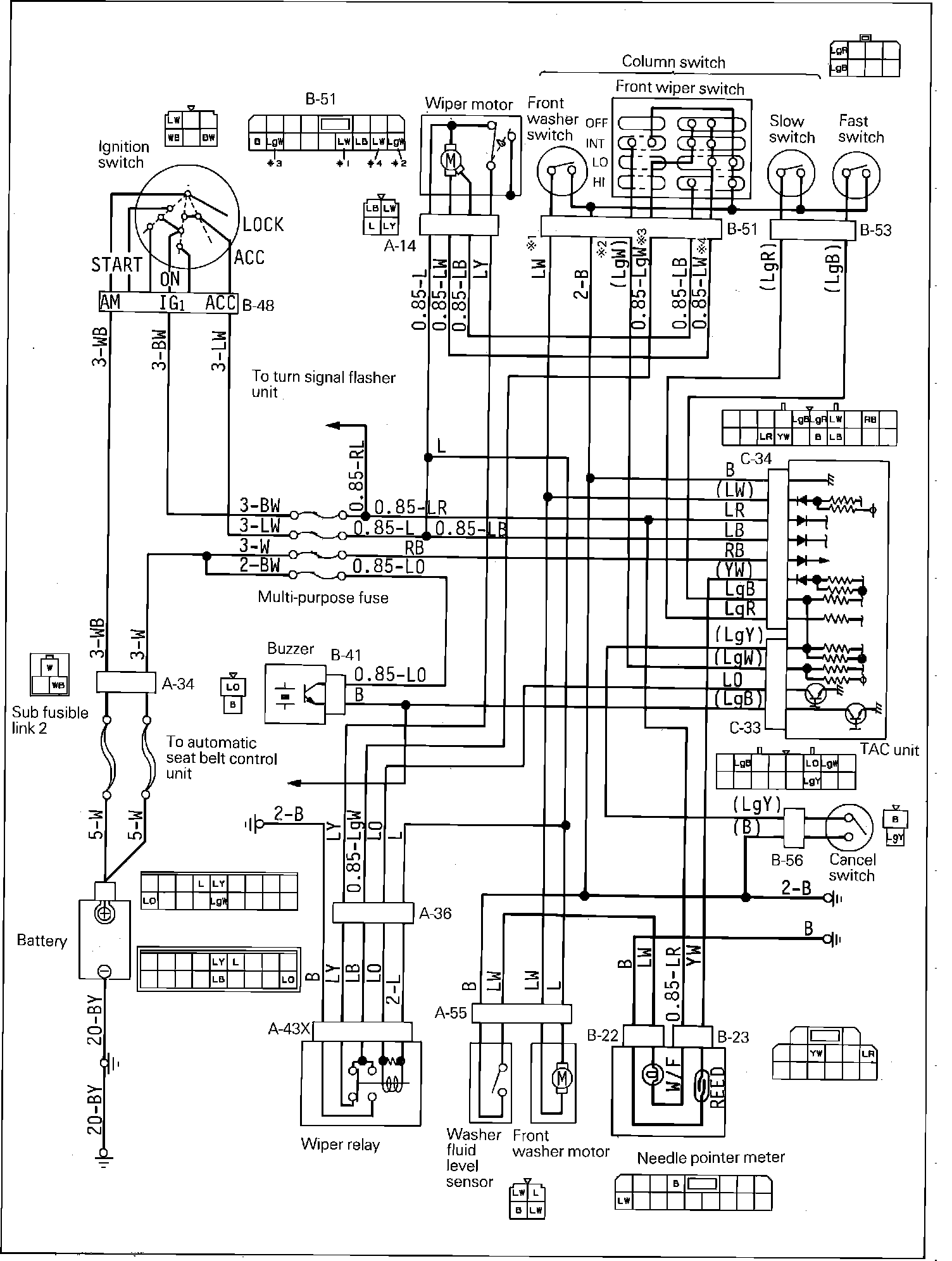 Windshield Washer & Wiper Wiring Circuit: