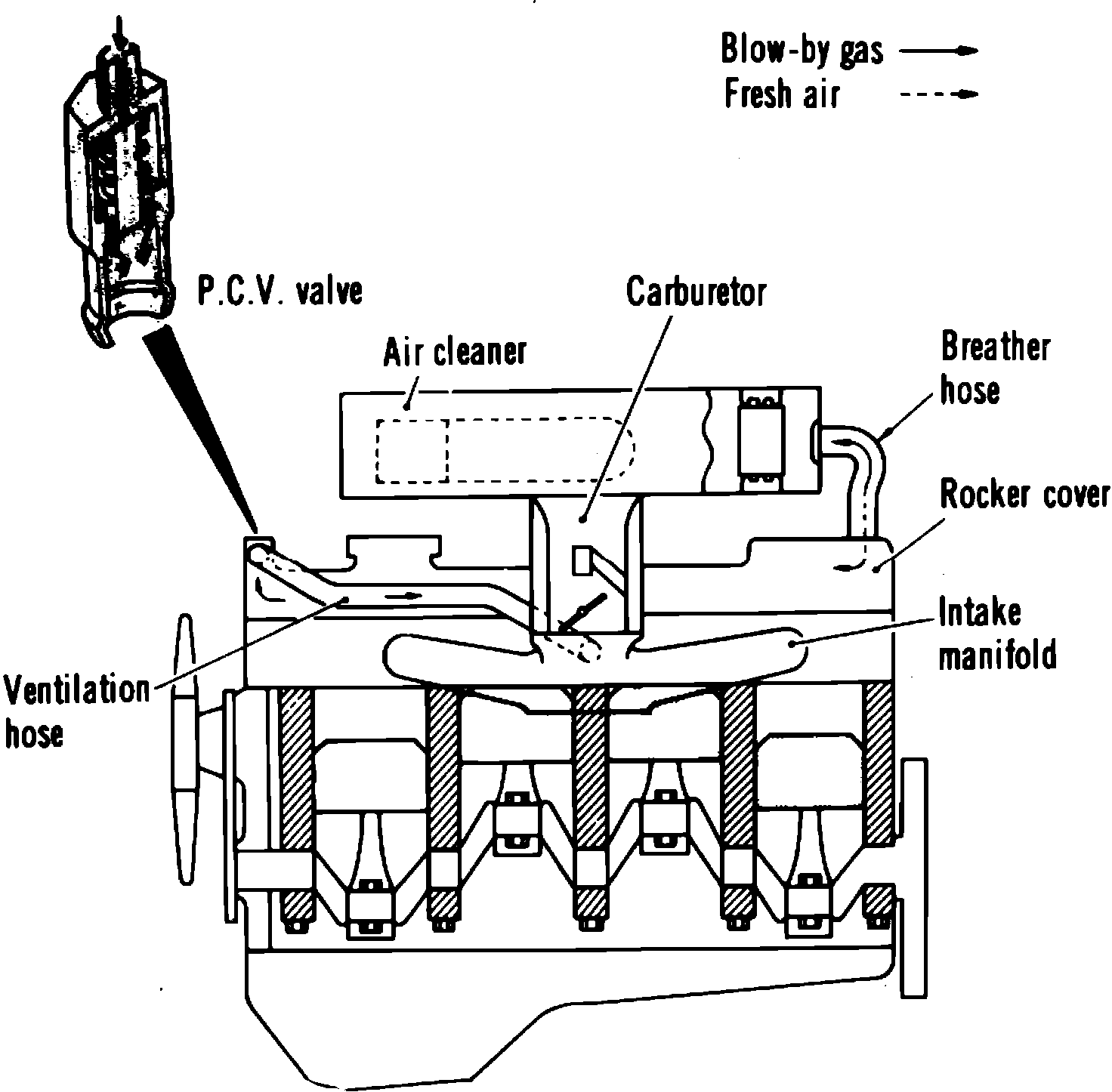Positive Crankcase Ventilation (PCV) System. 1982-86 2600cc engine & 1982-86 2000cc engine: