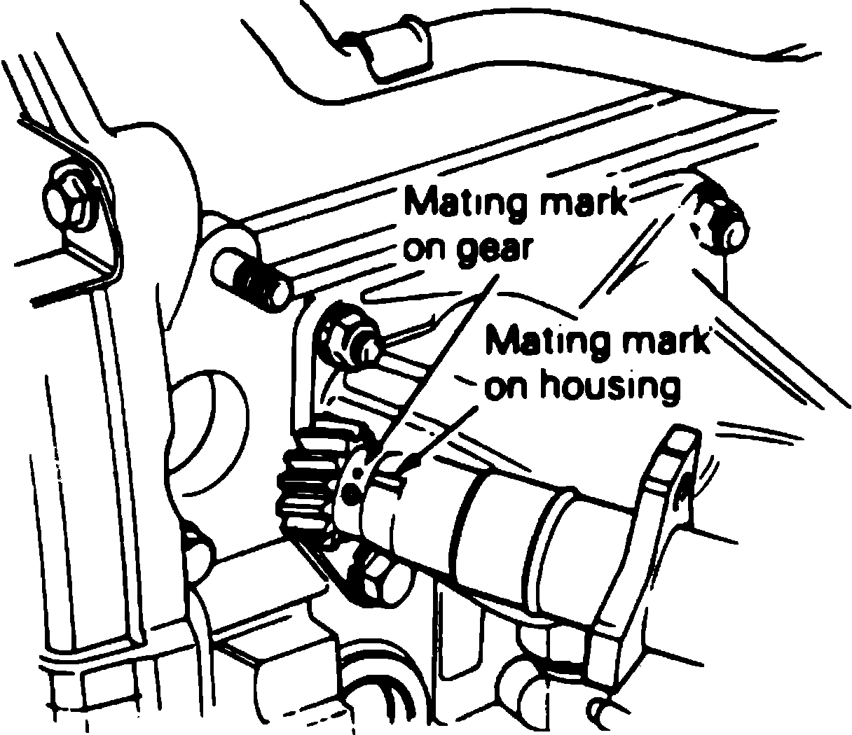 2. Align mating mark line on distributor housing with punch mark on distributor gear, Fig. 5.
