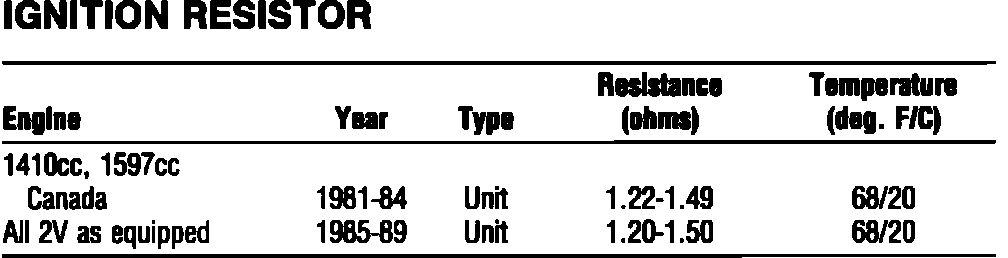 Ignition Ballast Resistor: Specifications