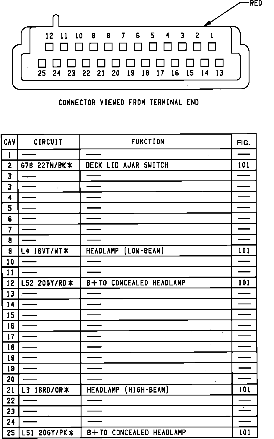 BCM Red Connector (Mechanical Cluster W/Visual Message Center):