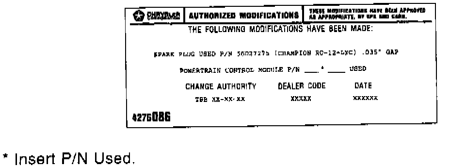 4. Install appropriate Powertrain Control Module as described on page 8D-11 of the 1995 Concorde/Intrepid/Vision/LHS/New Yorker Service Manual (Publication No. 81-270-5140).