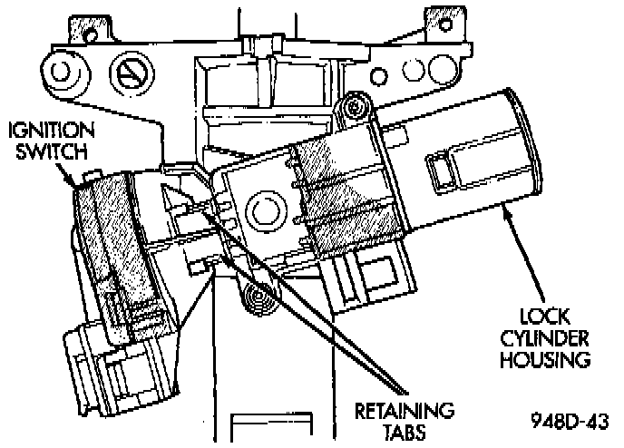 15. Depress retaining tabs and pull ignition switch from steering column.