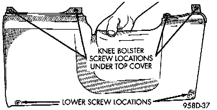 5. Pull instrument panel top cover up enough to gain access to knee bolster screws.