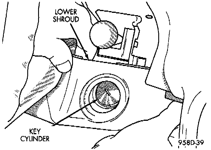8. Pull lower shroud to clear ignition cylinder and key release, if equipped.
