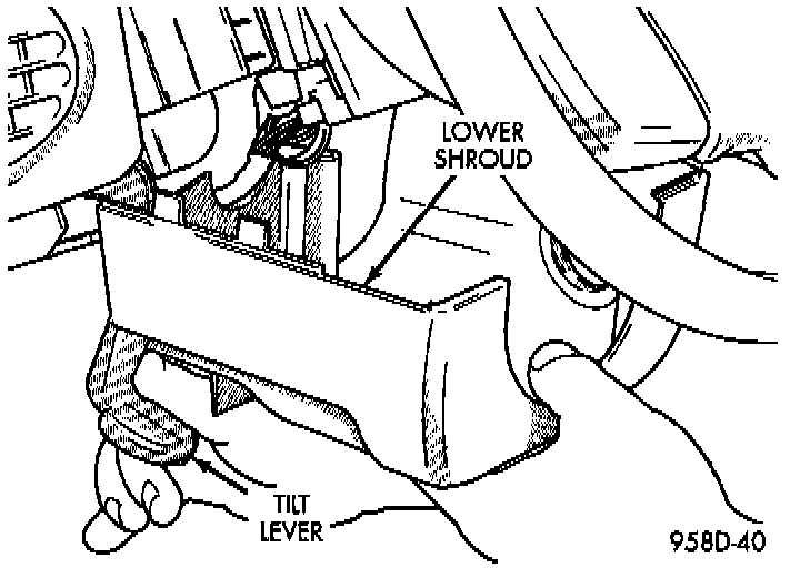 9. Hold tilt wheel lever down and slide lower shroud forward to remove it from column.