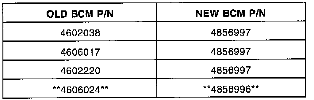 Effective immediately, the new P/N Body Control Module will be shipped by the vendor when any of the old part numbers are ordered (JA Body Control Modules must be ordered on DIAL Function 11).