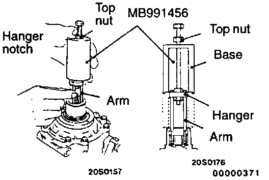 5. Lower the base of the special tool to cover the hanger, and tighten the top nut until it touches the base.