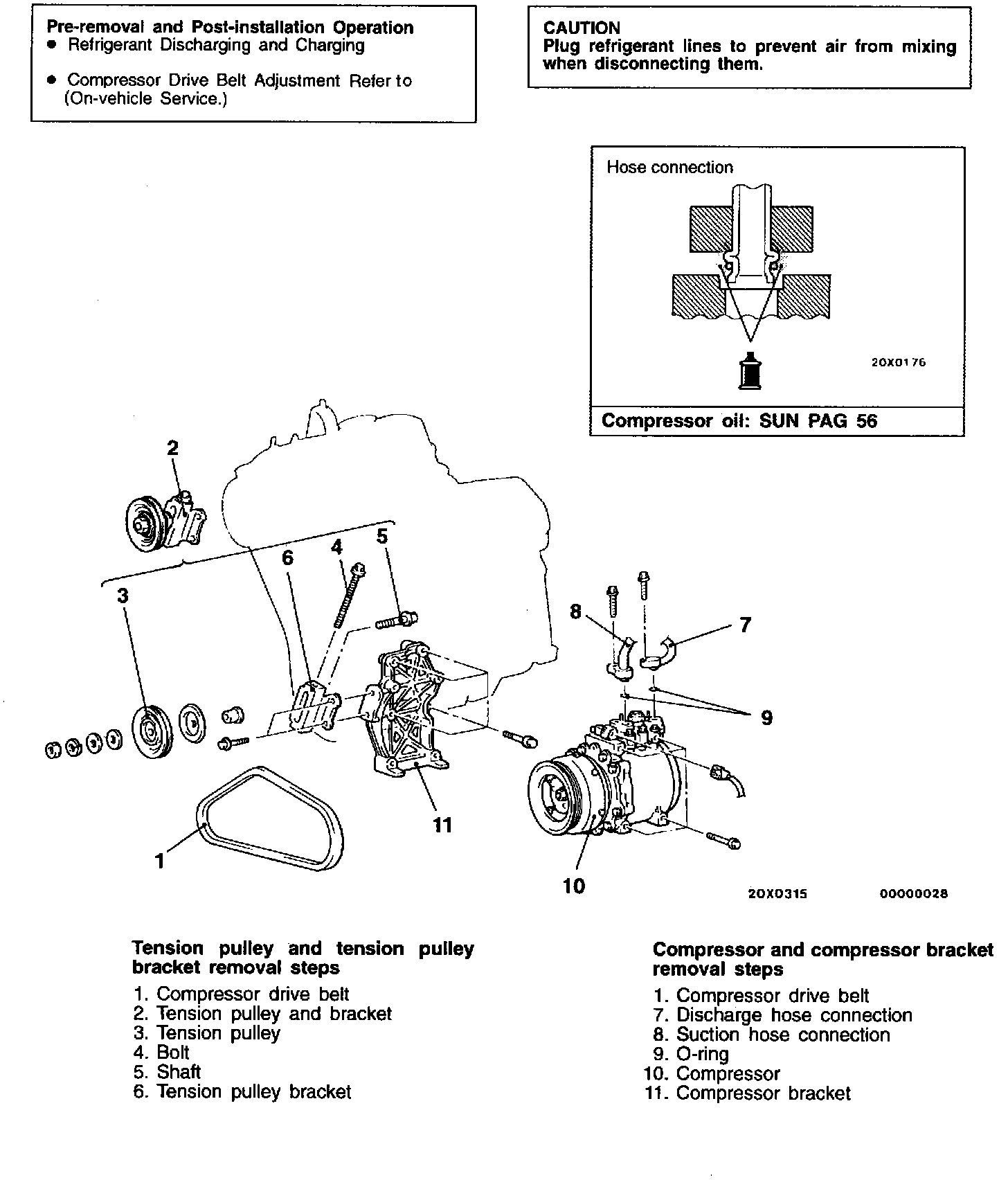 If a new compressor is installed, first adjust the amount of oil according to the procedures described below, and then install the compressor.