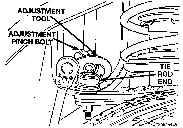 3. Loosen tie rod adjustment pinch bolt. Rotate adjustment sleeve using Snap-On Tool WA12A or equivalent to align toe to specifications.