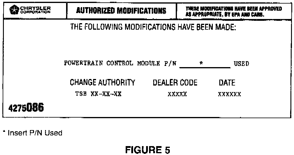 9. Type the necessary information on the "Authorized Software Update Label" p/n 04669020 (Figure 4). Attach the label to the PCM and cover the label with the clear plastic overlay.