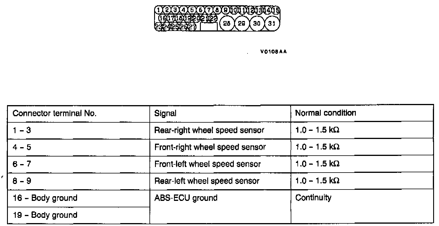 Turn the ignition switch off and disconnect the ABS-ECU connectors before checking resistance and continuity.