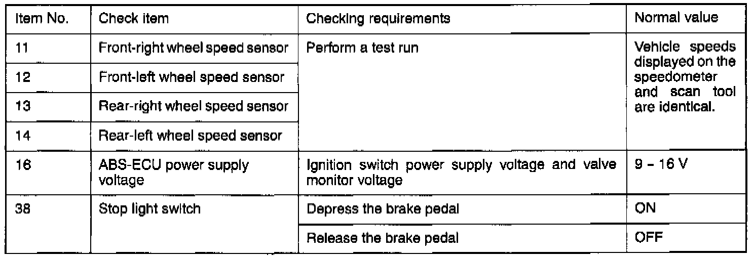 The following items can be read by the scan tool from the ABS-ECU input data.
