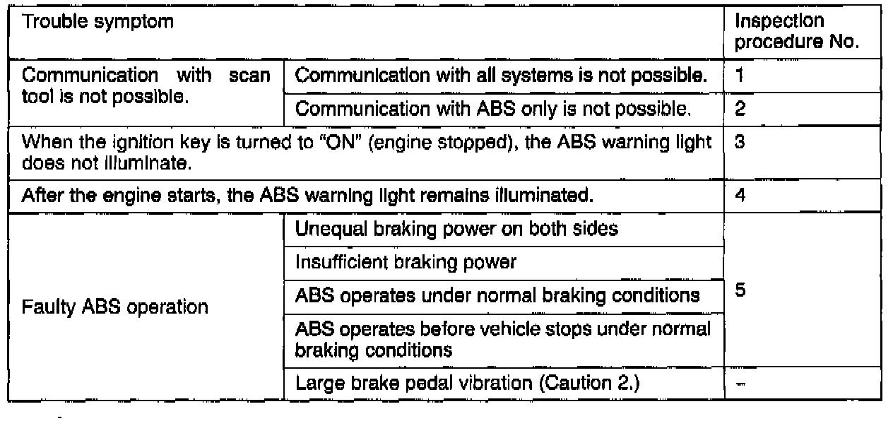 1. If steering movements are made when driving at high speed, or when driving on road surfaces with low frictional resistance, or when passing over bumps, the ABS may operate even though sudden braking has not occurred. Because of this, determine if the problem occurred while driving under these conditions.