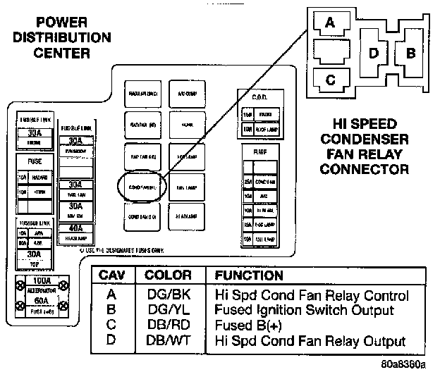 Power Distribution Center, Hi Speed Condenser Fan Relay Connector: