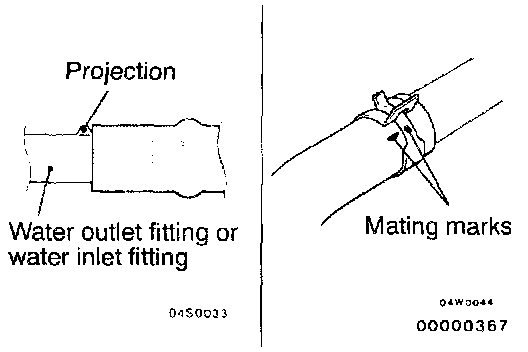 (2) Align the mating marks on the radiator hose and hose clamp, and then connect the radiator hose.