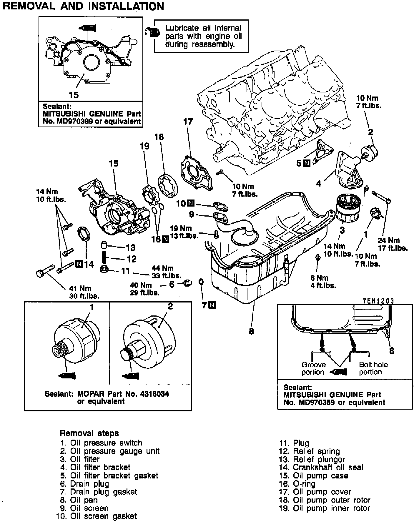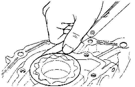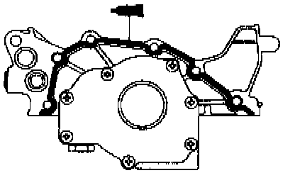 (2) Apply a 3 mm (0.118 inch) diameter bead of sealant to the oil pump case. Be sure to install the oil pan quickly while the sealant is wet (within 15 minutes).