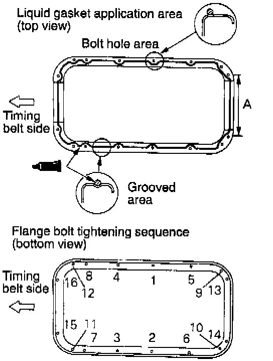Caution When installing the oil pan, be sure not to expel the sealant from the oil pan flange at portion A in the illustration.