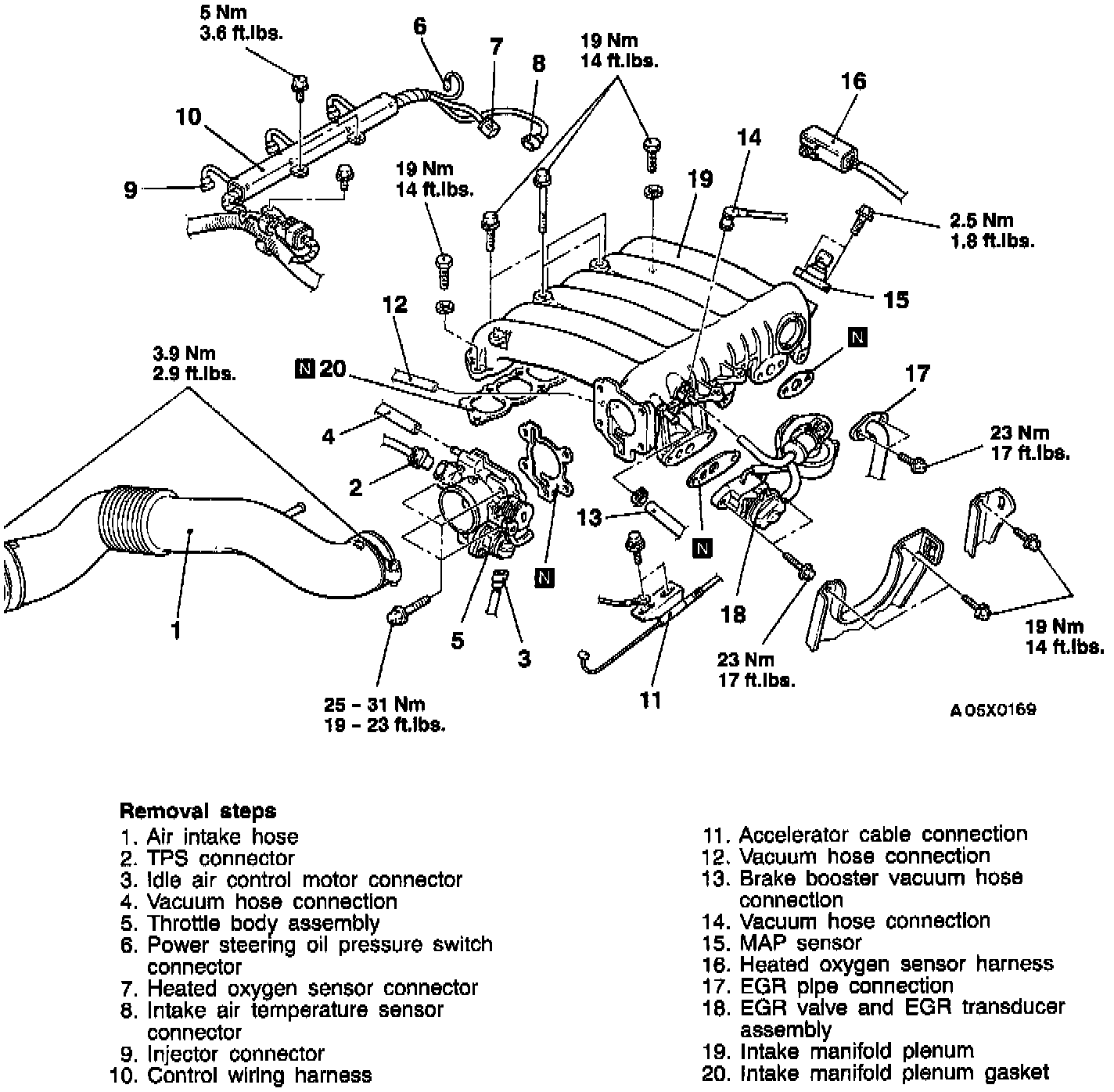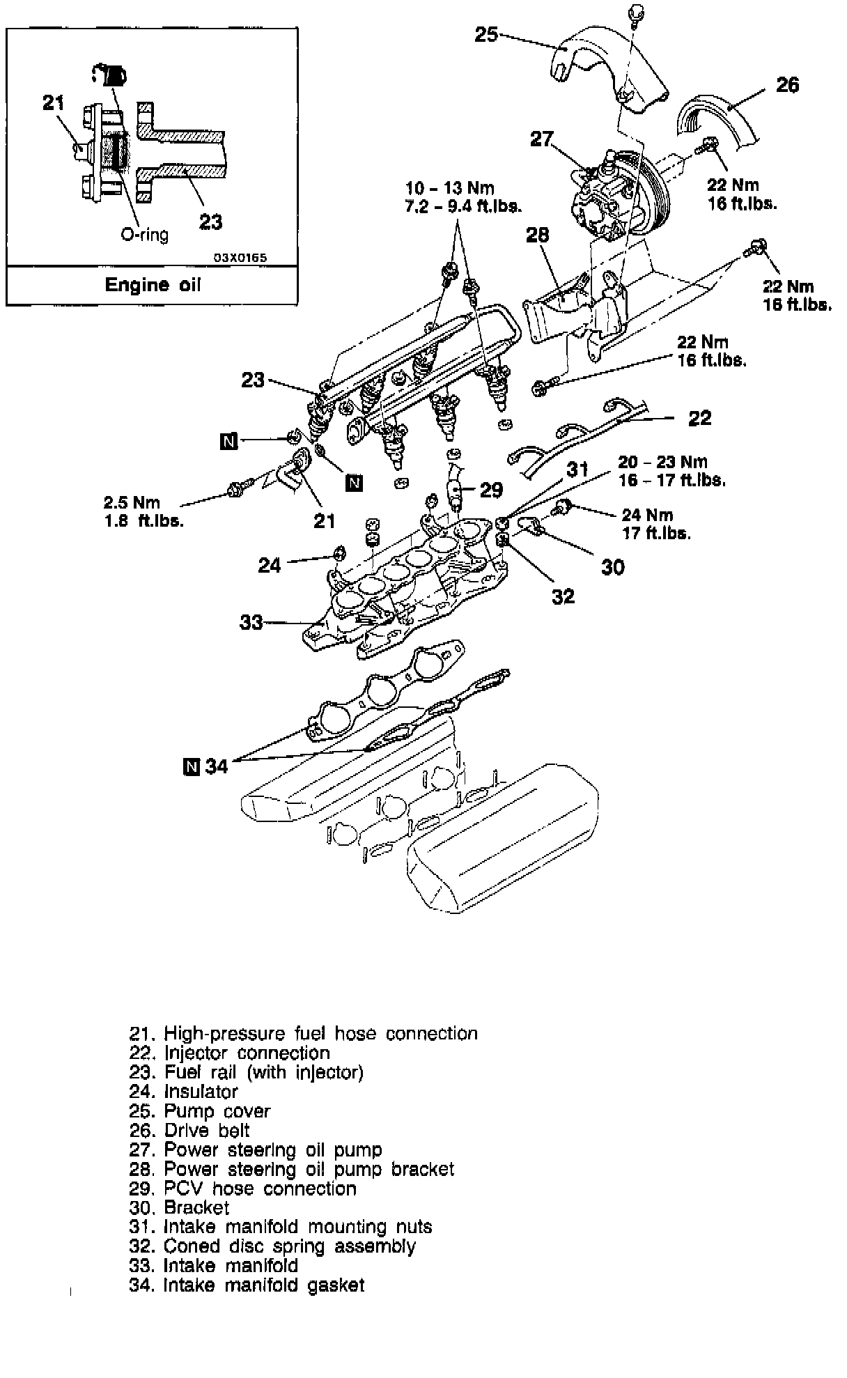 NOTE Suspend the removed power steering oil pump (by using wire or similar material) at a place where no damage will be caused during removal/installation of the intake manifold.